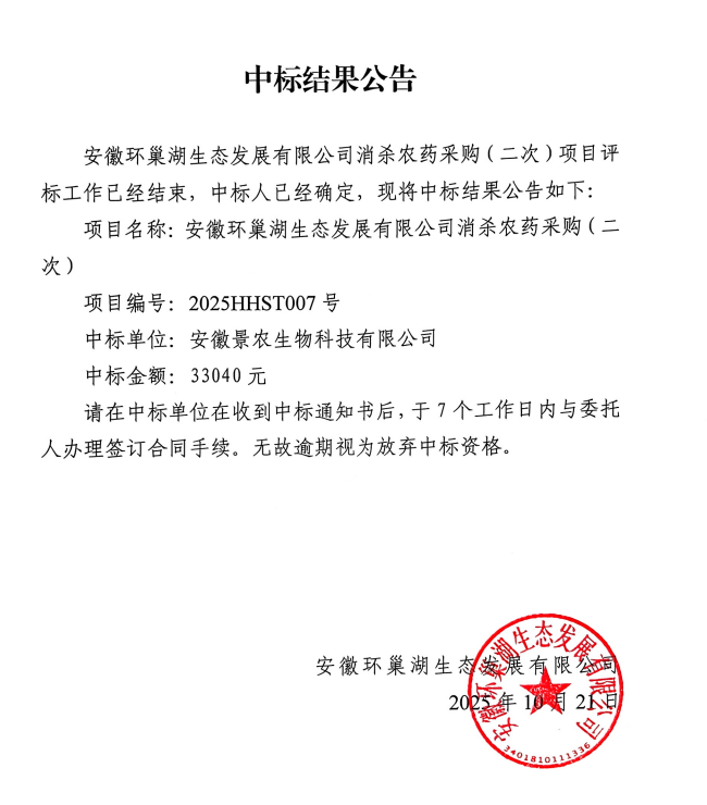 安徽环巢湖生态发展有限公司消杀农药采购(二次)