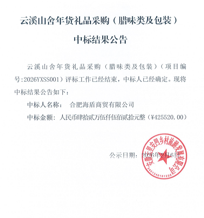 云溪山舍年货礼品采购(腊味类及包装)中标结果公告