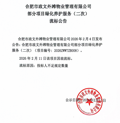 合肥市政文外滩物业管理有限公司部分项目绿化养护服务(二次)流标公告