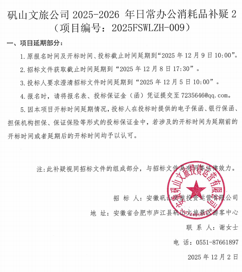 矾山文旅公司2025-2026年日常办公消耗品补疑2