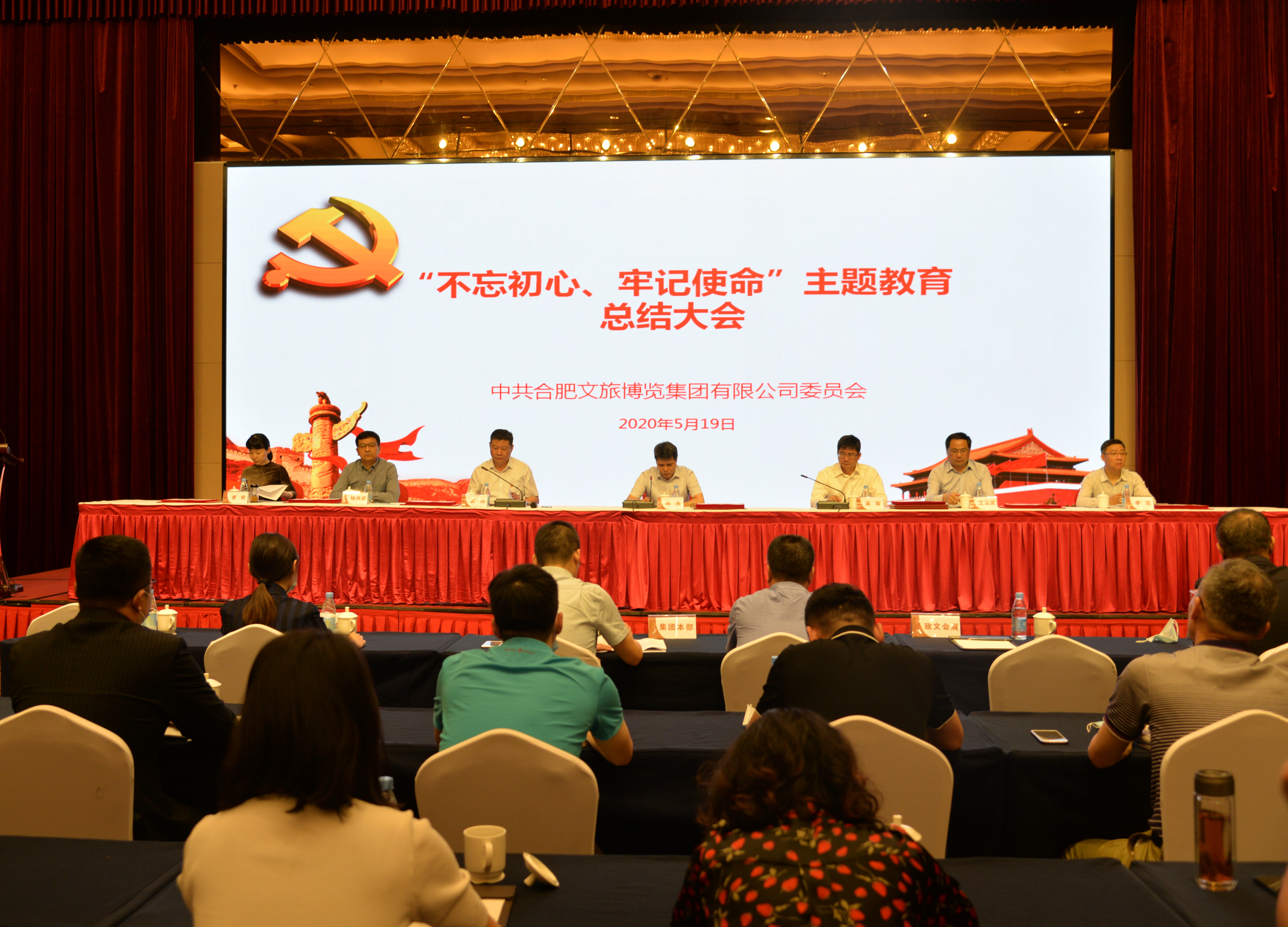 2020年5月19日下午,合肥文旅博览集团召开“不忘初心、牢记使命”主题教育总结大会,全面总结主题教育取得的成效,对巩固拓展主题教育成果进行部署。集团公司党委班子成员、各党支部委员、集团公司部长助理及以上干部职工、所属企业中层及以上干部、部分职工代表共110余人参加会议,会议由集团公司党委副书记、董事、工会主席赵伟同志主持。