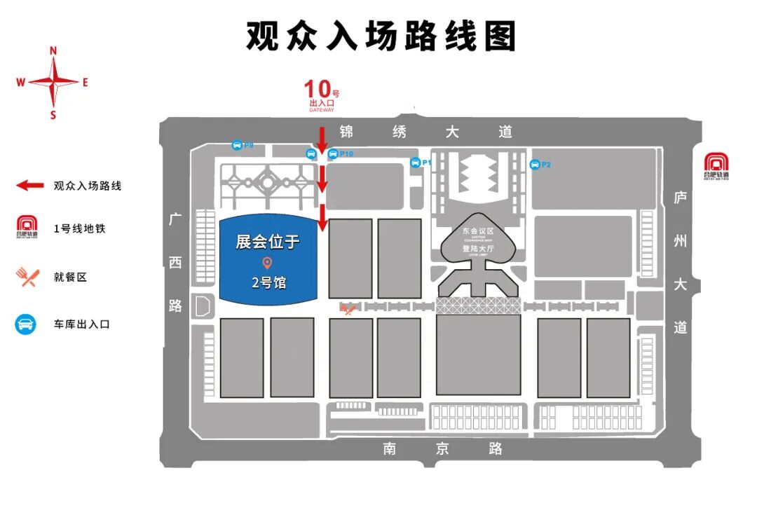1. 观众请由上图所示锦绣大道10号进出参观。