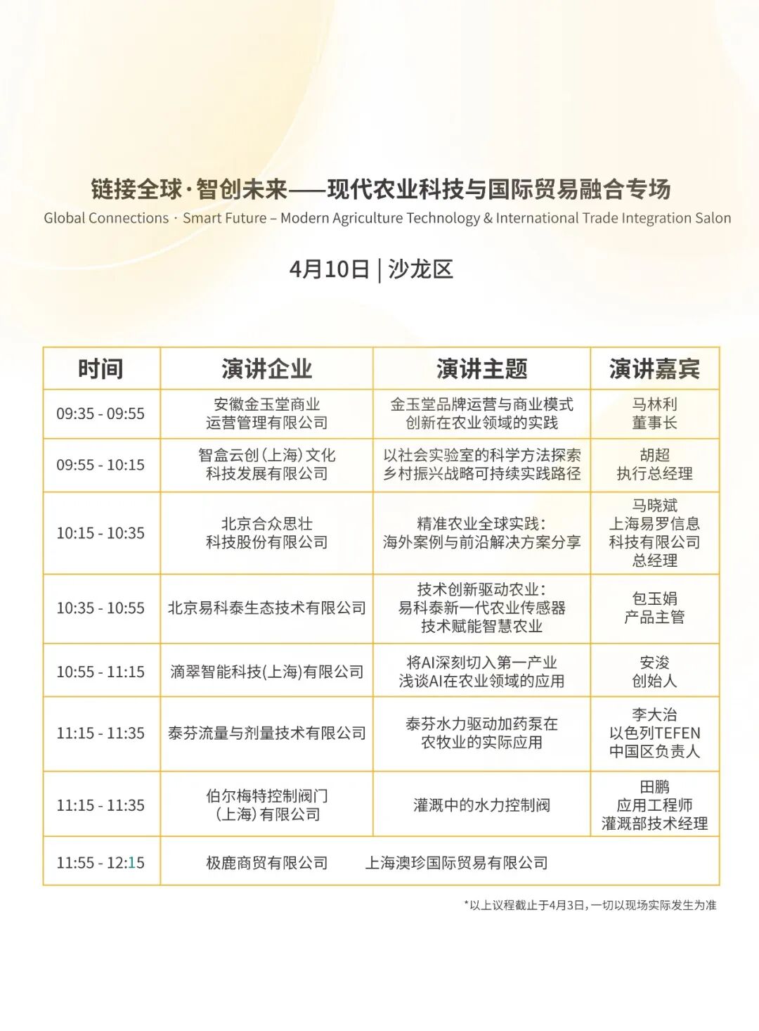 *信息截至2026年4月3日,部分活动安排及主题存在调整可能,请以现场活动为准。
