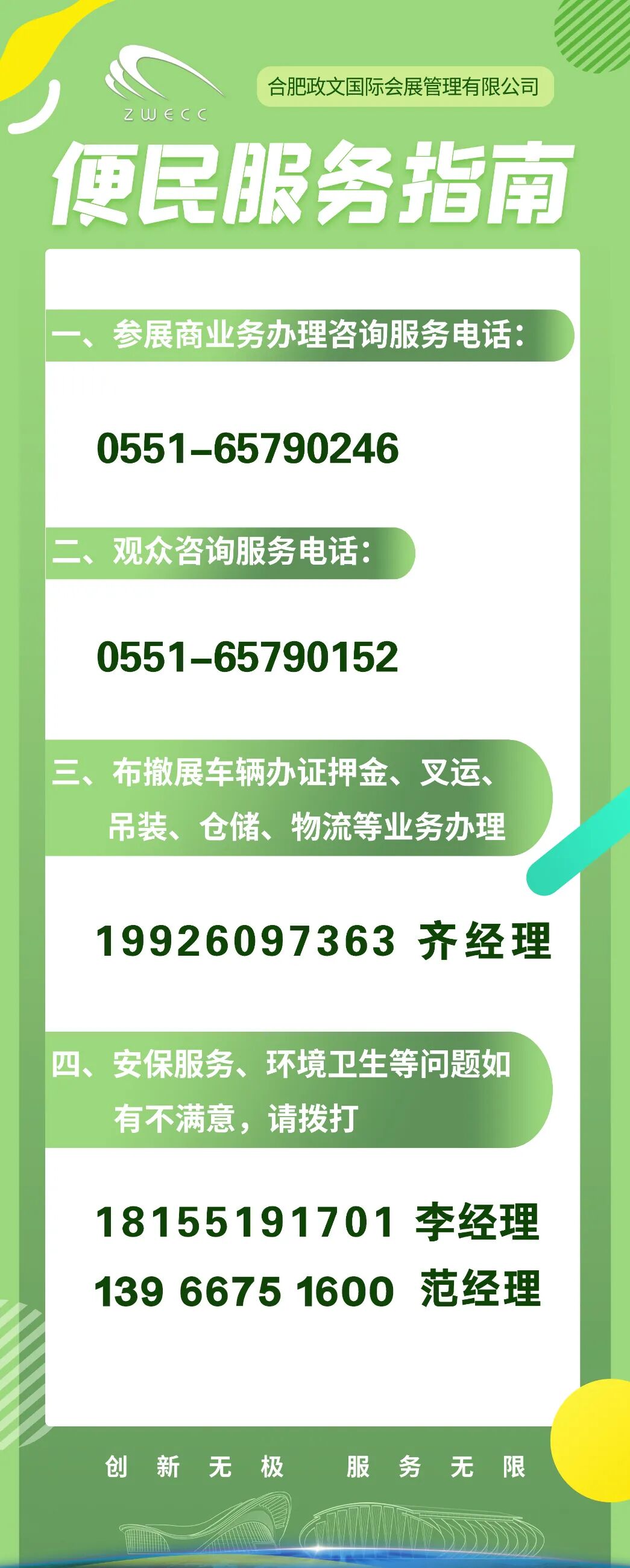 如果您对观展、参展事宜存在什么疑问,或是有任何宝贵的意见建议,欢迎按需拨打上述咨询电话,我们将全方位为您解疑答惑、排忧解难,竭诚提供服务。