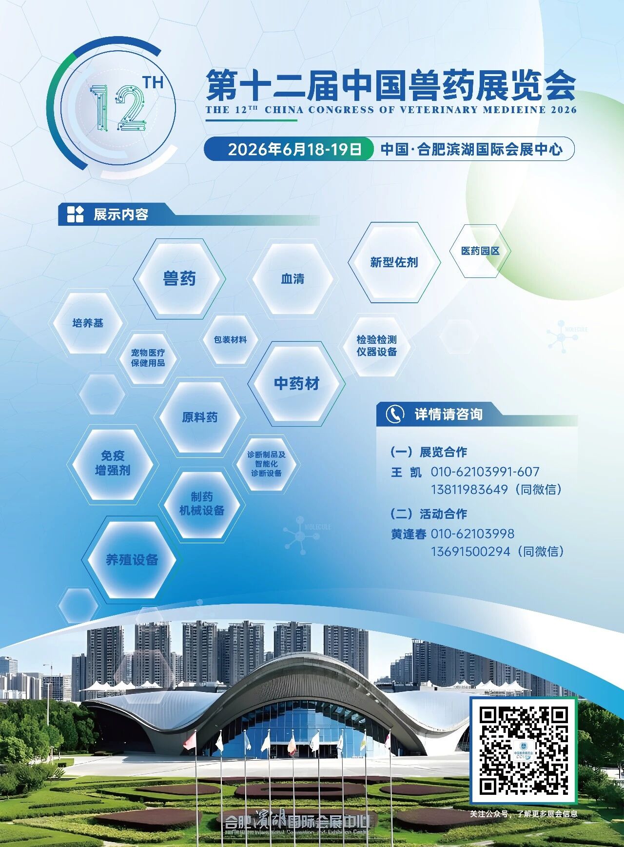 当“十五五”规划启新程,当兽药产业迈向高质量发展关键期,一场承载行业期待的年度盛会正式官宣——第十二届中国兽药展览会,定于2026年6月18-19日,在合肥滨湖国际会展中心盛大启幕!